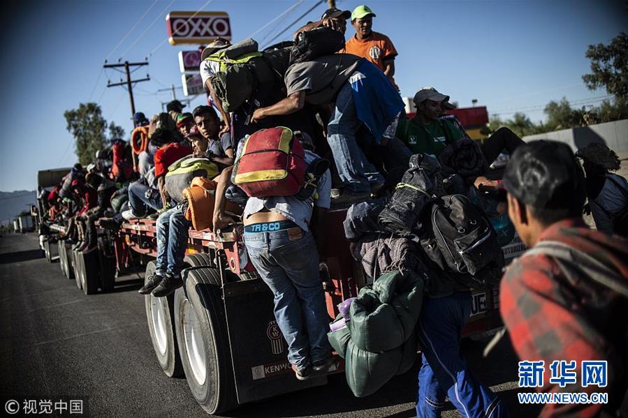 大批中美洲移民持續(xù)抵近美墨邊境 敞篷車上擠滿人