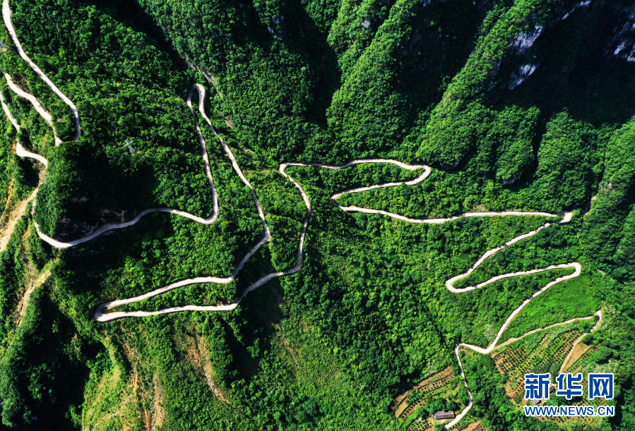 下莊村通往外界的公路(2020年7月3日攝,無人機照片)新華社記者王全超 攝