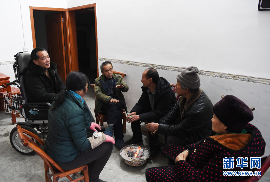 1月6日,毛相林(左三)和下莊村村民交流。新華社記者王全超 攝