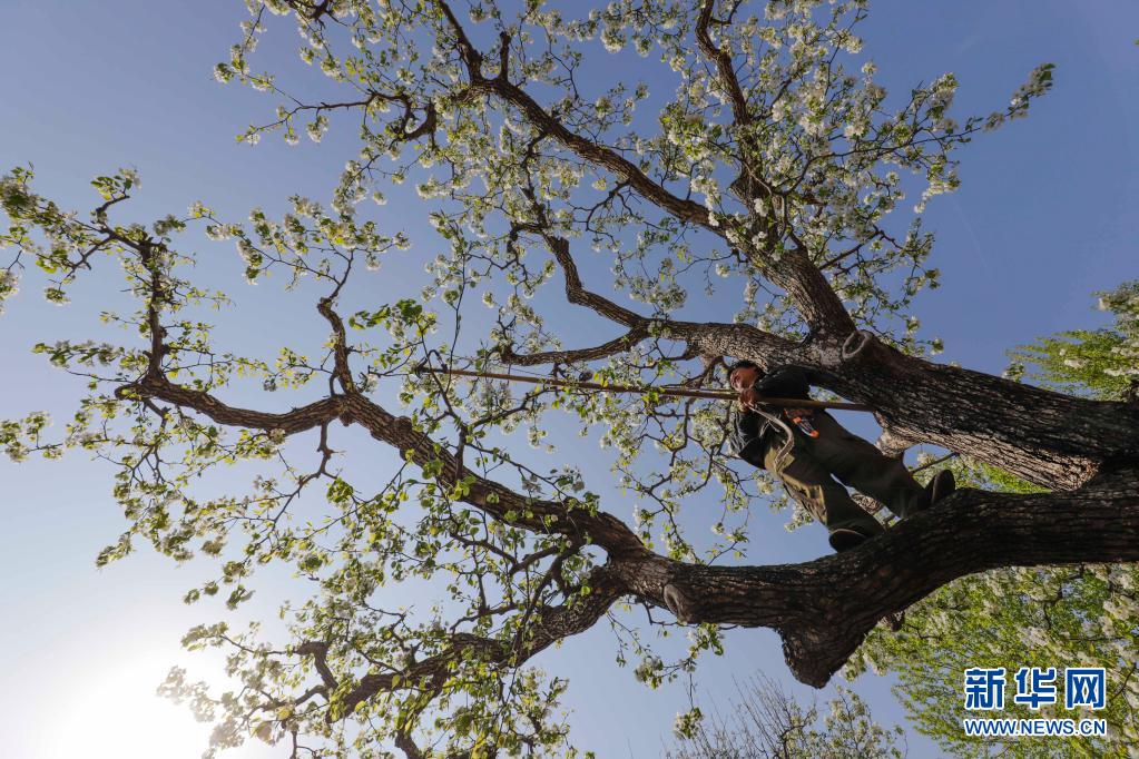 4月6日,河北唐山遵化市鐵廠鎮(zhèn)東平臺(tái)村的農(nóng)民在果園管護(hù)梨樹(shù)。
