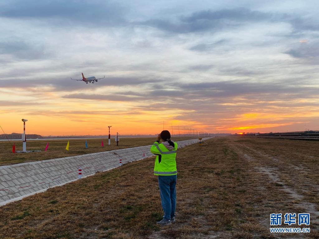 鳥擊防范員辛曉芳在觀察航班起落情況(資料照片)。