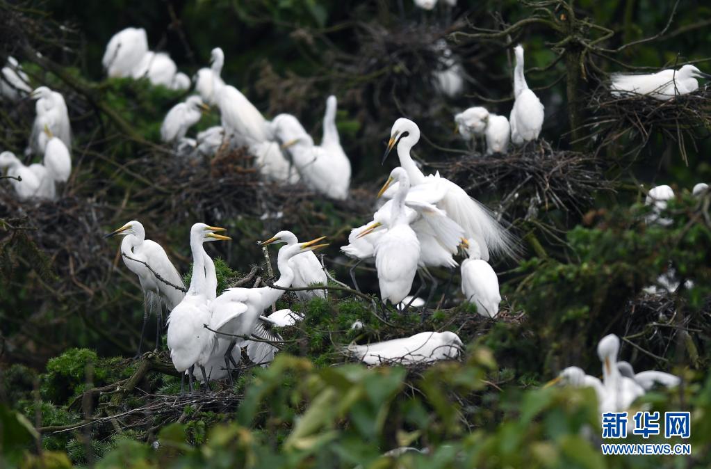 近期,在位于鄱陽湖畔的江西省南昌市新建區(qū)象山森林公園內(nèi),已安家筑巢的鷺鳥進(jìn)入孵化哺育旺季。象山森林公園有著“鷺鳥王國”的美譽(yù),每年都會吸引白鷺、蒼鷺、夜鷺等種類的鷺鳥飛抵棲息和繁衍后代。