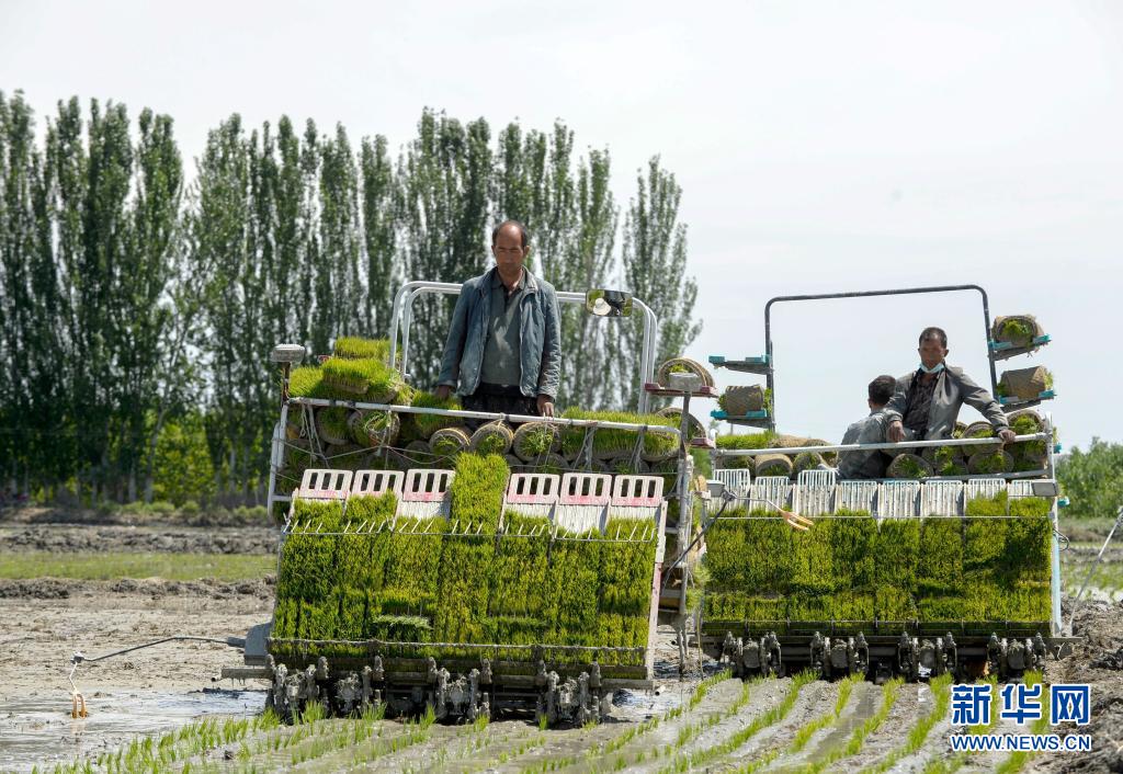 進(jìn)入5月,新疆溫宿縣的11萬余畝水稻進(jìn)入插秧期。稻田間,插秧機往來穿梭,一片繁忙景象。