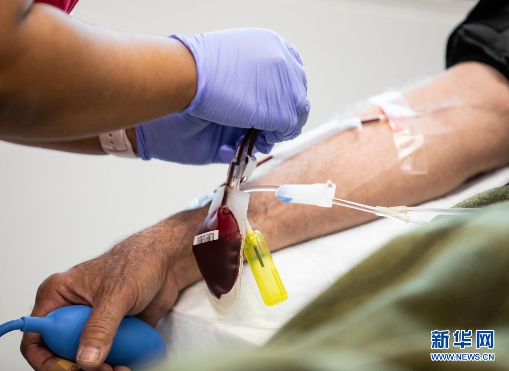 6月14日,在美國芝加哥,一名獻(xiàn)血志愿者在大芝加哥地區(qū)紅十字會一獻(xiàn)血站內(nèi)獻(xiàn)血。新華社發(fā)(喬爾·萊納攝)