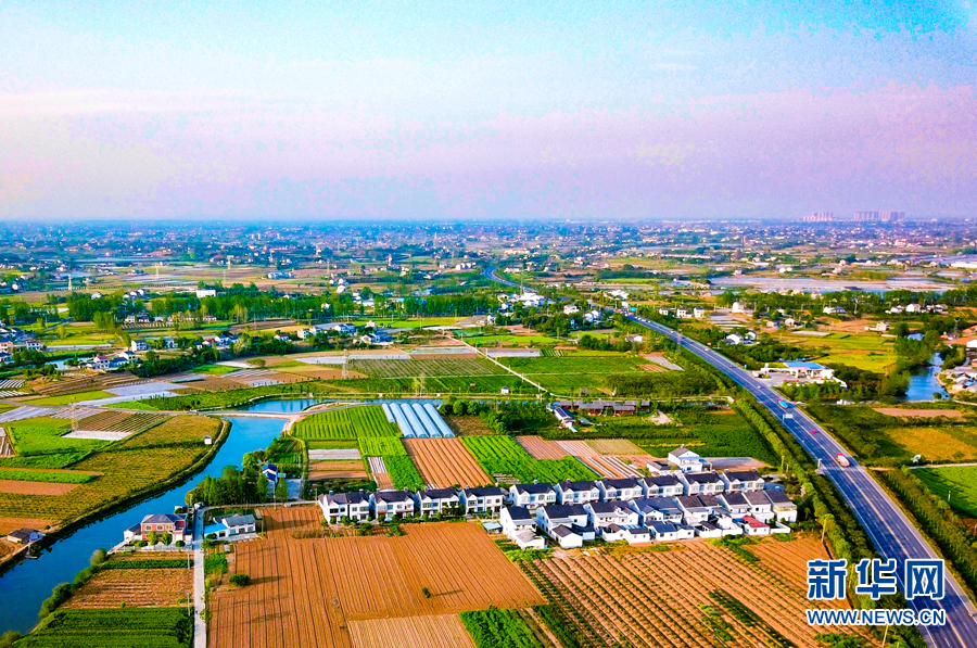 航拍湖北省枝江市董市鎮(zhèn)田園鄉(xiāng)村。新華網(wǎng)發(fā) 陳黃奎 攝