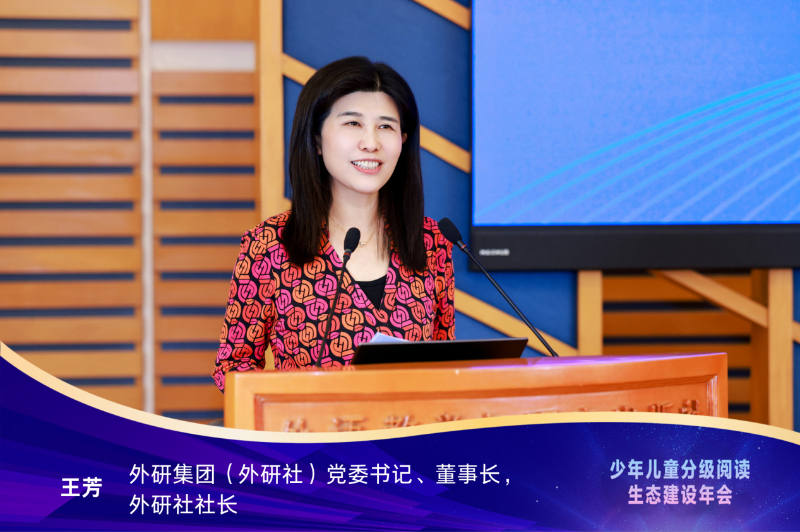 外研集团党委书记、董事长,外研社社长王芳在致辞中指出,在全民阅读法治化新时代,外研社正从“内容提供者”升级为“分级阅读生态共建者与组织者”,重点从立标准、强产品、融数智、落场景四个方面持续发力,持续升级《中国中小学生英语分级阅读标准》;基于60多个套系、6000多册英文分级读物体系和经典IP组成的中文读物,打造更加贴近读者需求的阅读产品矩阵;并将已落地全国30个省区市、超850家的分级阅读馆,建设为连接家校社的“阅读教育第三空间”。她倡议各界携手同心,共建生机盎然、富有活力的分级阅读新生态,以阅读赋能成长,让每一位孩子在阅读的浸润中,拥抱美好未来。