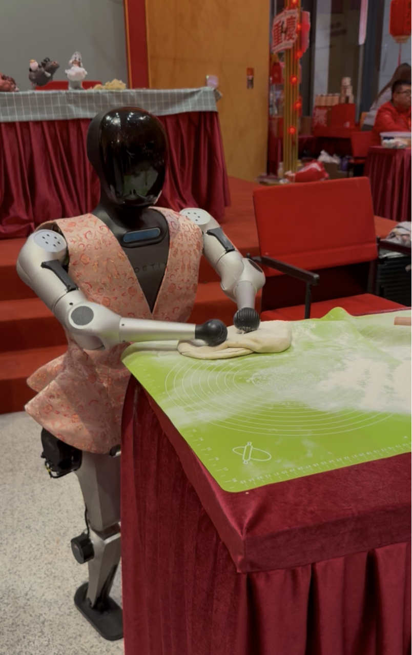 机器人帮助衢江烤饼制作技艺传承人揉面。新华网记者李欣摄