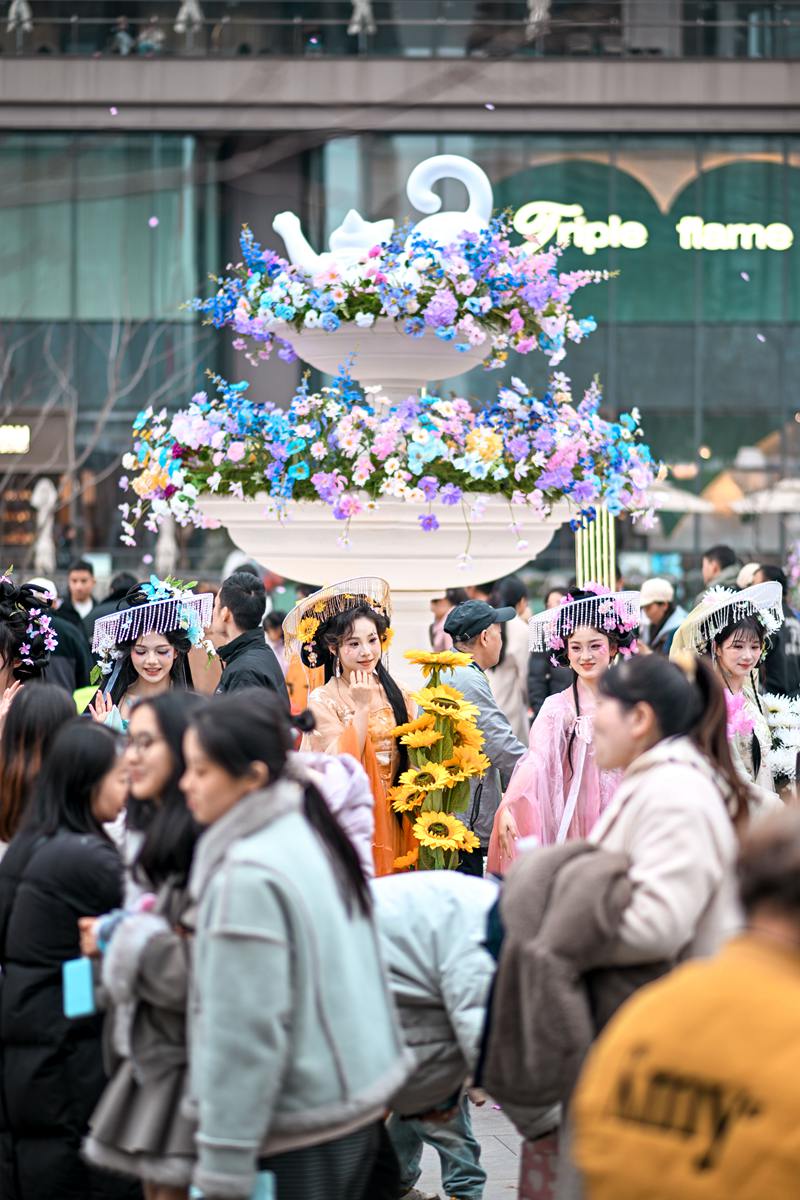 图为武汉滨江天街“樱花季”活动,武昌区以花为媒,促进商文旅体融合。新华网发