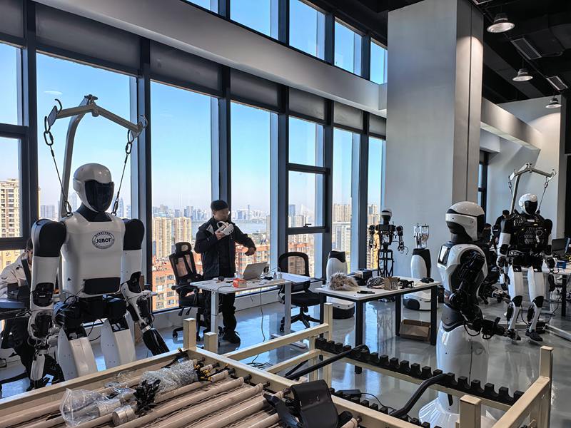 图为武汉数创大厦里,荆楚人形机器人正在调试。新华网发