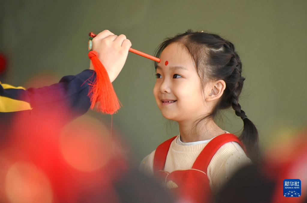 2月21日,安徽省合肥市蜀山区南岗镇惠民新村幼儿园的小朋友们参加“吃龙鳞”活动。