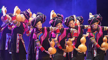 9月25日,身着民族服装的演员在云南省澜沧县民族剧院表演。