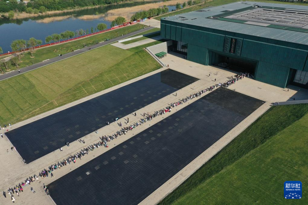 5月1日,游客在河南安阳殷墟博物馆新馆排队进场。