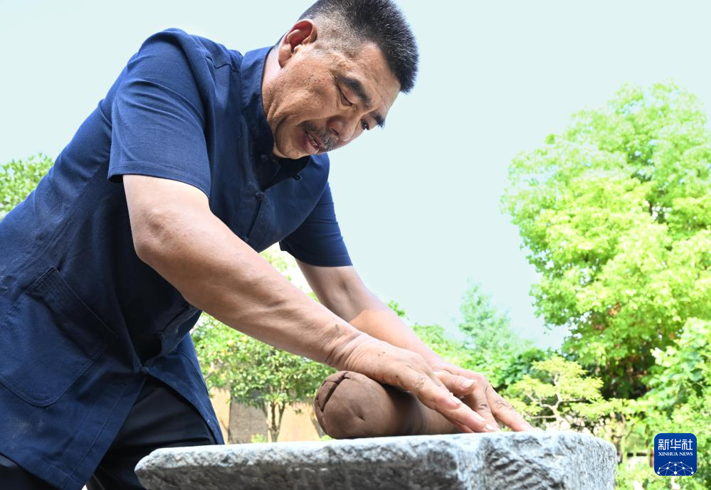 张书芳在使用压香工具进行古法压香(7月3日摄)。