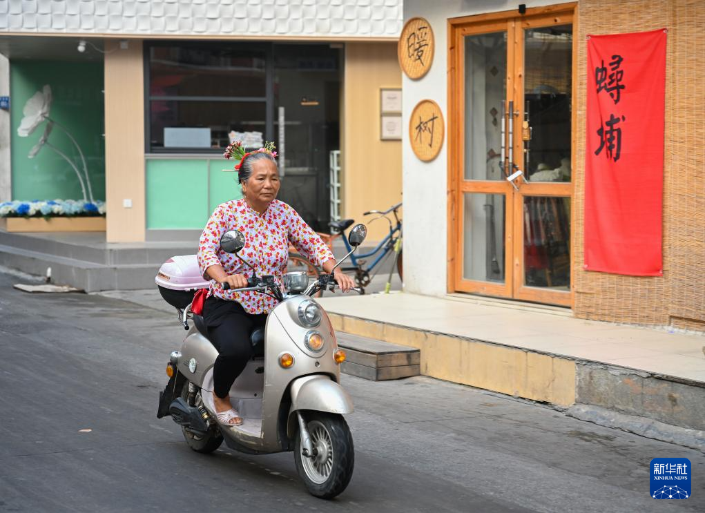 在福建泉州蟳埔村,一位阿婆骑电动车去菜市场买菜(8月28日摄)。