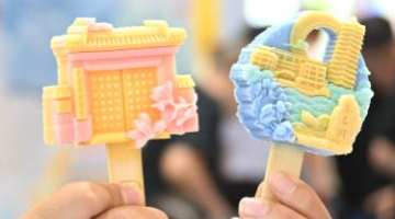 9月26日,参展商展示两款高校主题文创冰淇淋。