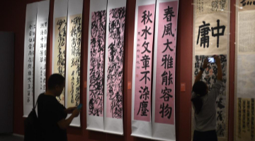 10月29日,观众在太原北齐壁画博物馆体验互动项目。