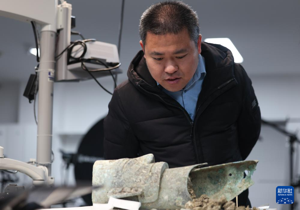 12月16日,三星堆研究院工作人员在扫描一件青铜文物。