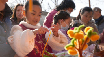 1月19日,在河南省焦作市博爱县柏山镇义沟村,村民在选购新年饰品。