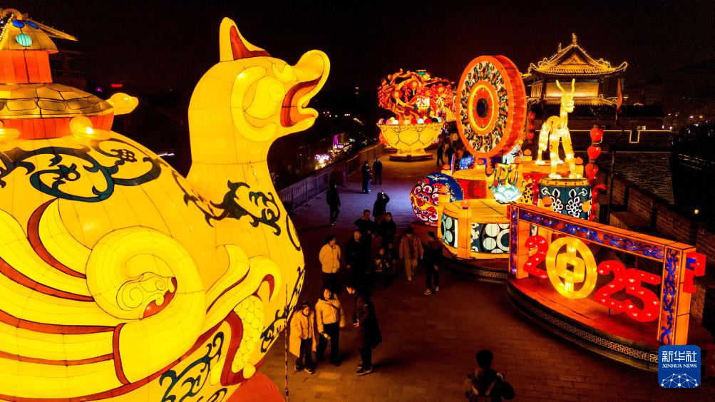当晚,2025乙巳蛇年“长安灯会”正式启幕,万盏花灯在西安城墙、大唐芙蓉园、大明宫国家遗址公园同步点亮。盛唐特色主题灯组、烟火气十足的国潮集市、光影交织的新春系列演出,为游客带来一场璀璨的新春灯火盛宴。本届灯会以“乙巳中国年,灯映长安春”为主题,持续至3月16日。