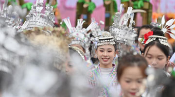2月2日,女子英歌舞队在广东汕头潮阳区“中华英歌 舞动潮阳——2025年春节潮阳英歌嘉年华活动”中巡游表演。