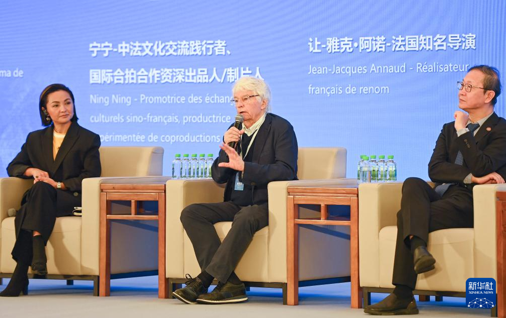 9月24日,法国导演让-雅克·阿诺(中)在“中法影像对话沙龙”交流。