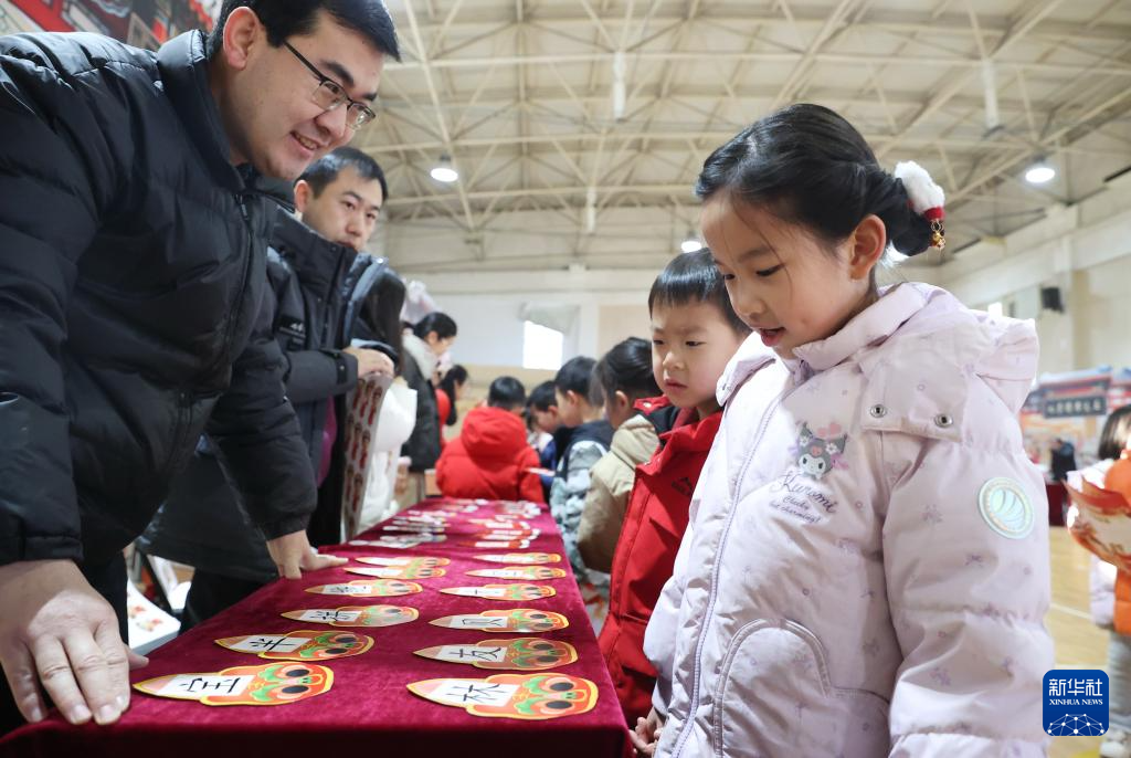 1月21日,北京小学学生在“小花蕾过大年”期末实践活动上猜灯谜。