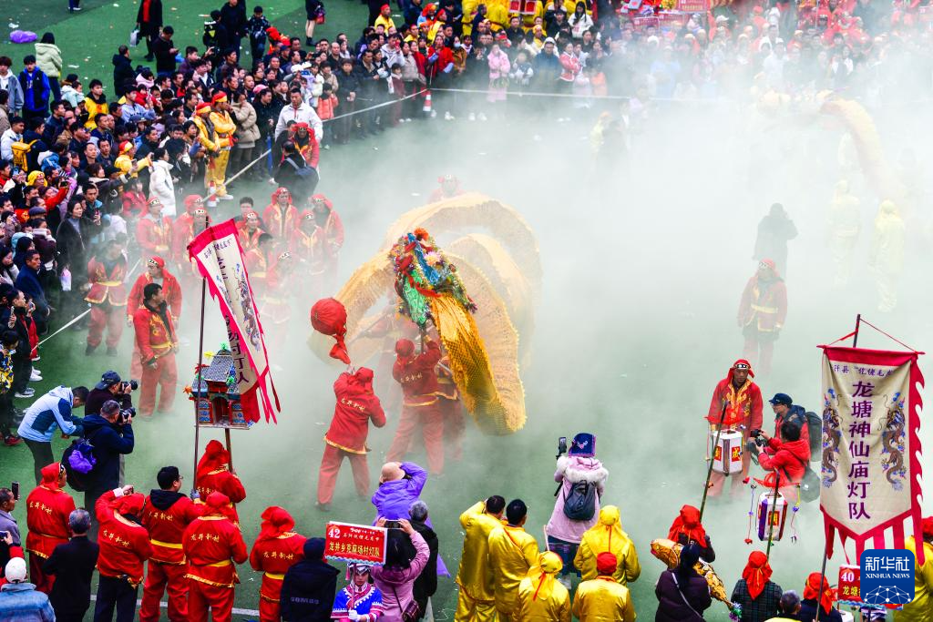 2月27日,人们在贵州省石阡县参加仡佬毛龙节舞龙大赛。