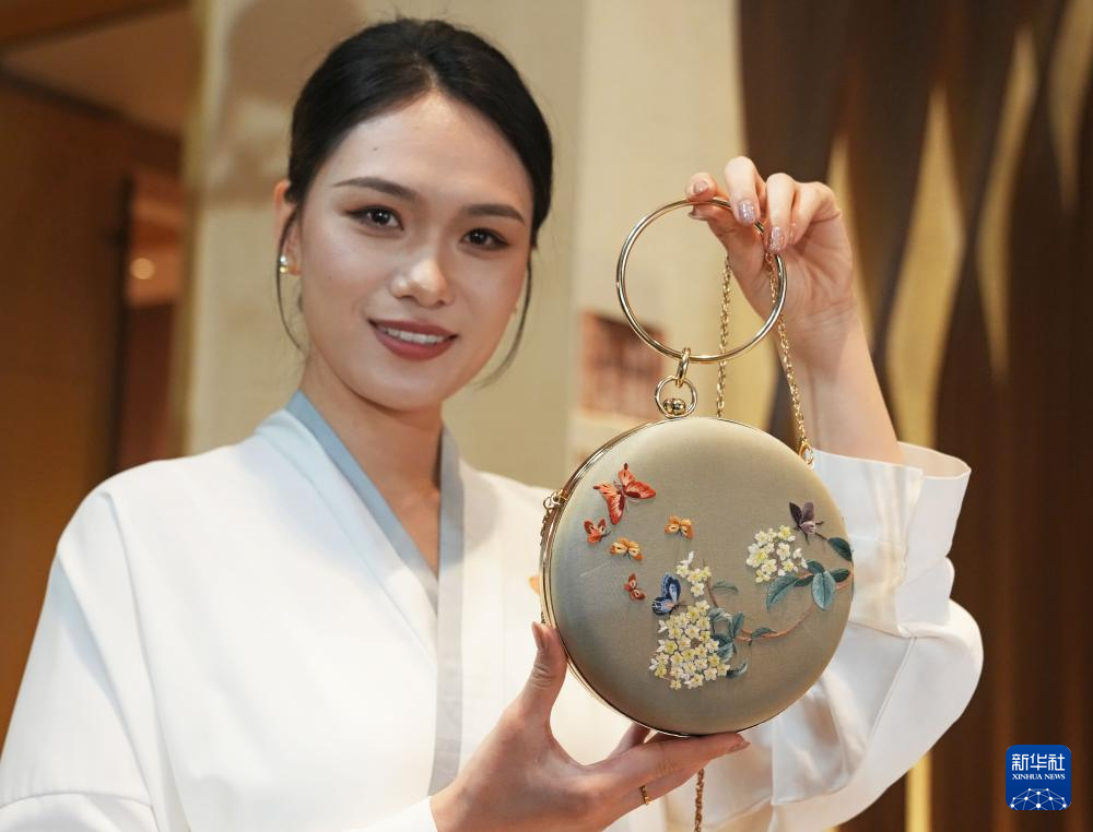 4月25日在大会外场展区拍摄的手绣女包。