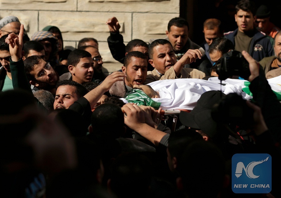 GAZA, Jan. 13 (Xinhua) -- A Palestinian fisherman, who was shot Friday night by Egyptian navy forces in southern Gaza Strip, died in a hospital in Rafah town in Gaza Saturday morning, according to the Health Ministry in Gaza.