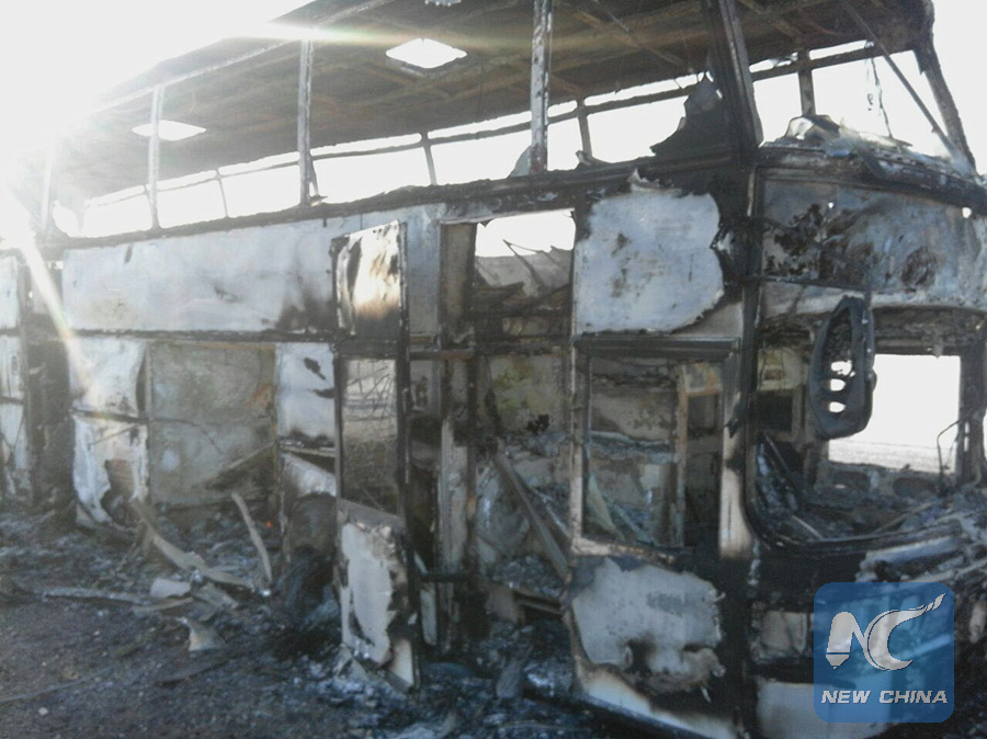 ASTANA, Jan. 18 (Xinhua) -- At least 52 Uzbek citizens were killed after a bus caught fire in northwest Kazakhstan on Thursday, said the Kazakh Interior Ministry.