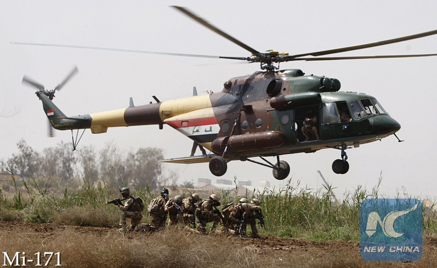 Iraqi soldiers take position as they disembark from an MI171 helicopter during a joint land and air training with U.S. soldiers north of Baghdad, March 29, 2010. (AFP PHOTO)