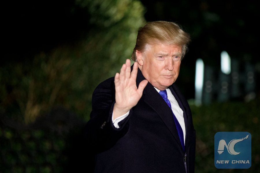 U.S. President Donald Trump leaves the White House for the World Economic Forum in Davos Switzerland, in Washington D.C., the United States, on Jan. 24, 2018. (Xinhua/Ting Shen)