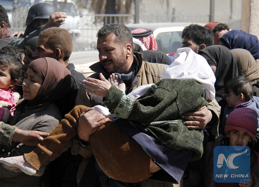 DAMASCUS, March 17 (Xinhua) -- As many as 50,000 people have left rebel-held areas in the capital Damascus' Eastern Ghouta within the past 72 hours, a monitor group reported on Saturday.