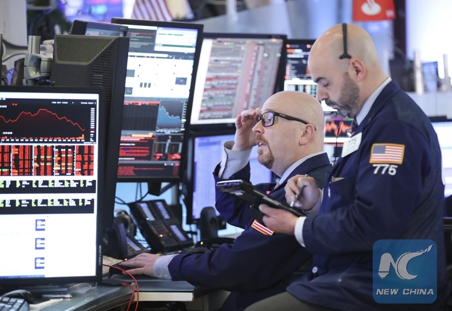 Traders work at the New York Stock Exchange in New York, the United States, March 22, 2018. U.S. stocks ended lower on Thursday, with the Dow plunging over 700 points, after the U.S. President Donald Trump announced to impose tariff on imported products from China. (Xinhua/Wang Ying)