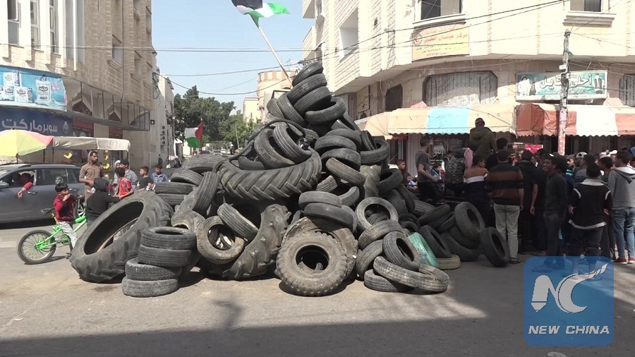 "The smoke of the burnt tires is meant to block the vision of the Israeli soldiers stationed along the borders," activist Hossam Moaarouf told Xinhua.