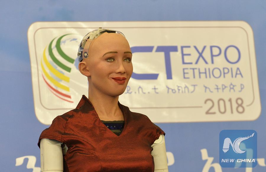Sophia is in Ethiopia to attend the 2nd International Information Communication Technology (ICT) Expo Ethiopia, 2018 underway with the theme "Transform Ethiopia."