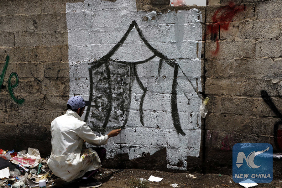 "Violence against the Yemeni women and children has been increasing in the war," Mubarak told Xinhua. "I'm drawing graffiti today to depict the social, economic and mental pains of women and children at war."