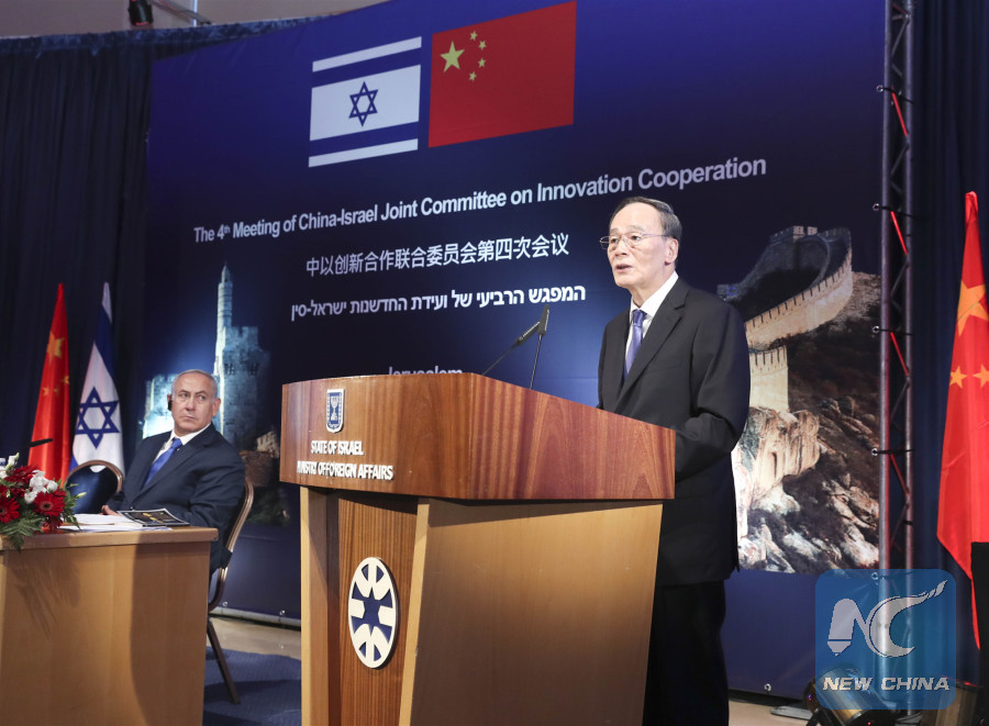 During his four-day stay, Wang met with Israeli President Reuven Rivlin and Prime Minister Benjamin Netanyahu, and co-chaired with the latter the fourth meeting of China-Israel Joint Committee on Innovation Cooperation (JCIC).