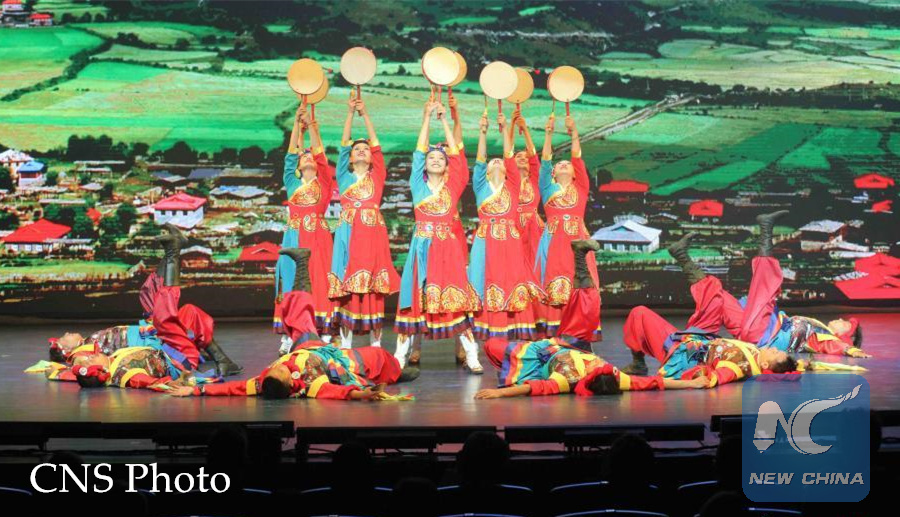 Dancers and singers from Gansu Province and Tibet Autonomous Region performed their traditional dances typically seen on the Qinghai-Tibet Plateau, where part of the ancient Silk Road ran centuries ago.