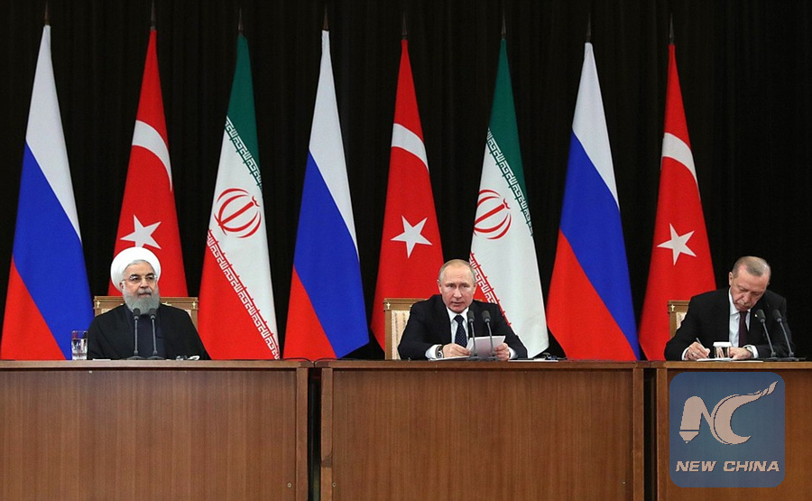 MOSCOW, Feb. 14 (Xinhua) -- Russia, Turkey and Iran on Thursday agreed on several key directions of future interaction in the settlement of the Syrian crisis after a trilateral summit of their presidents in the Russian city of Sochi.