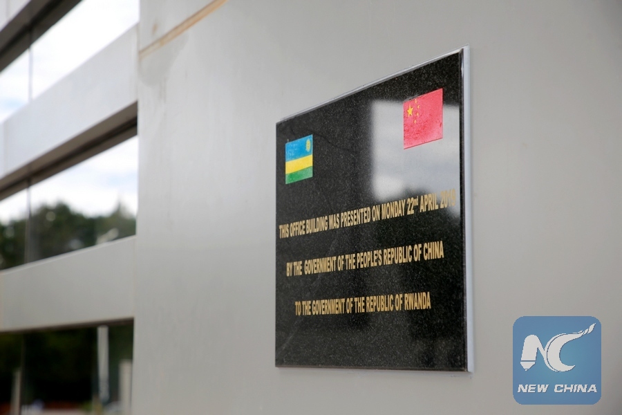 Photo taken on May 8, 2019 shows a plaque marking the building's delivery in the Administrative Office Complex of Rwanda in Kigali, capital city of Rwanda.(Xinhua/Lyu Tianran)