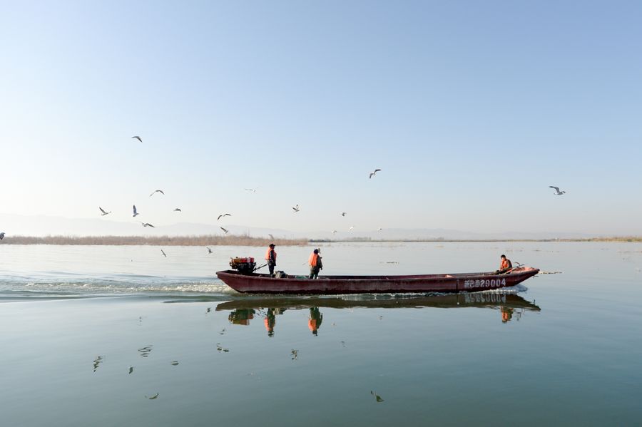 Fishermen of NW China's Xinjiang harvest pond smelt fish on Bosten Lake, which is China's largest inland freshwater lake.