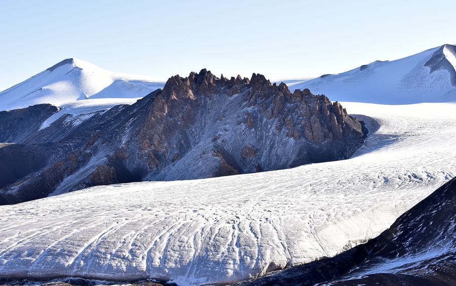 Photo taken on Oct. 21, 2019 shows a view of the Purog Kangri glacier which is located deep within the Qiangtang National Nature Reserve, about 90 kilometers northeast of Shuanghu County, Nagqu, southwest China's Tibet Autonomous Region. Shuanghu County has suspended tourism services relevant to the Purog Kangri glacier since June 1, 2018 to ensure better ecological recovery there. (Xinhua/Chogo)