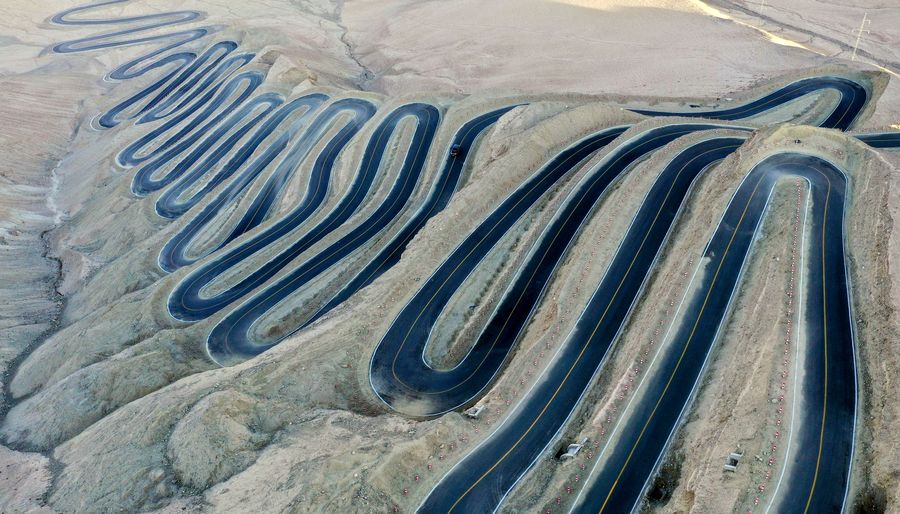 A view of a mountain road in Tajik Autonomous County of Taxkorgan, Oct. 20, 2019. (Xinhua/Ding Lei)
