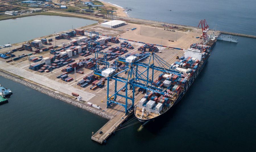 Photo taken on Dec. 9, 2018 shows the first phase of Kribi deep sea port project, constructed by China Harbour Engineering Company, in Cameroon. (Xinhua/Lyu Shuai)