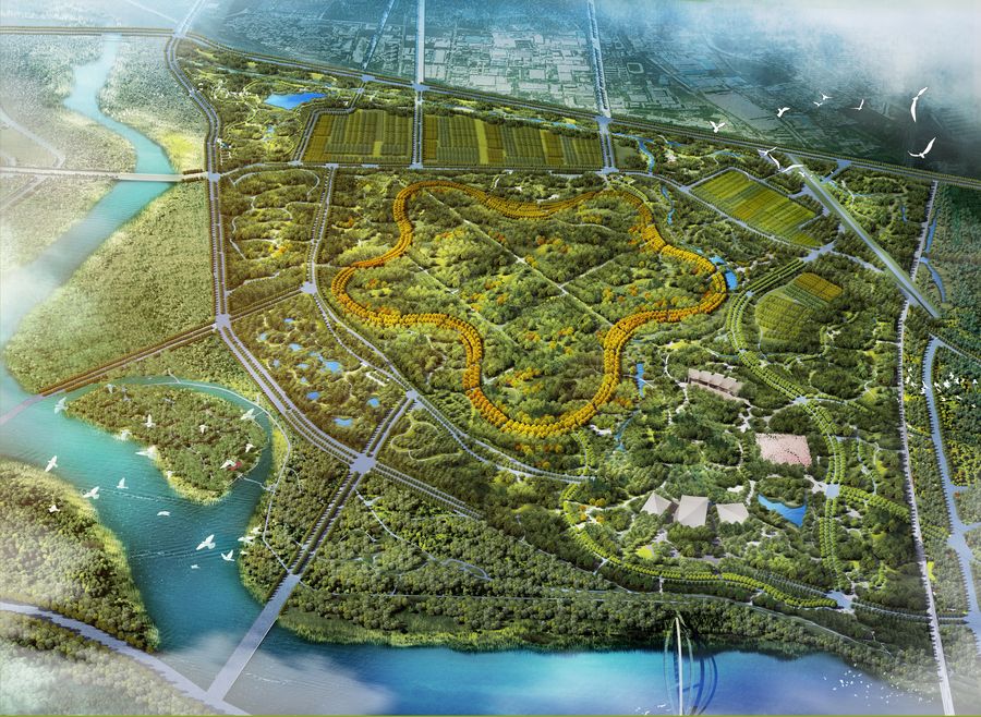 This undated photo shows the artistic rendering of the afforestation project in Tongzhou District, sub-center of Beijing. (Xinhua)