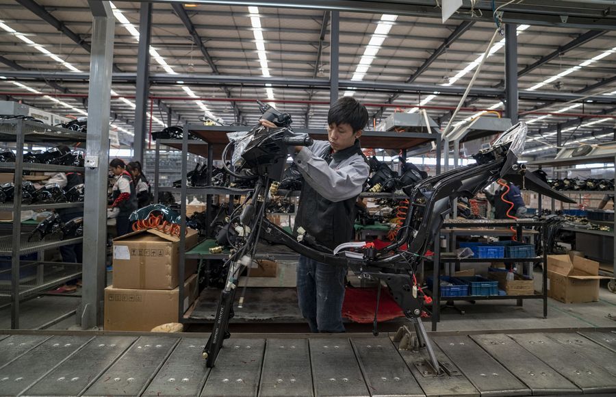 A man works at a motorbike factory in China (Yunnan) Pilot Free Trade Zone (FTZ) Dehong Area in Dehong, southwest China's Yunnan Province, Nov. 4, 2019. (Xinhua/Jiang Wenyao)