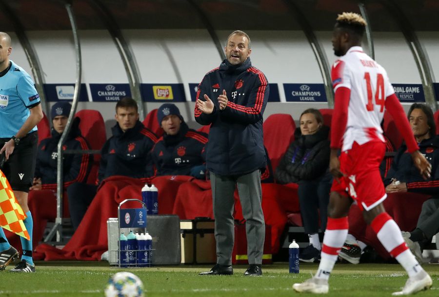 Bayern's coach Hansi Flick applauds during UEFA Champions League group B football match between Crvena Zvezda and Bayern in Belgrade, Serbia on Nov. 26, 2019. (Photo by Predrag Milosavljevic/Xinhua)
