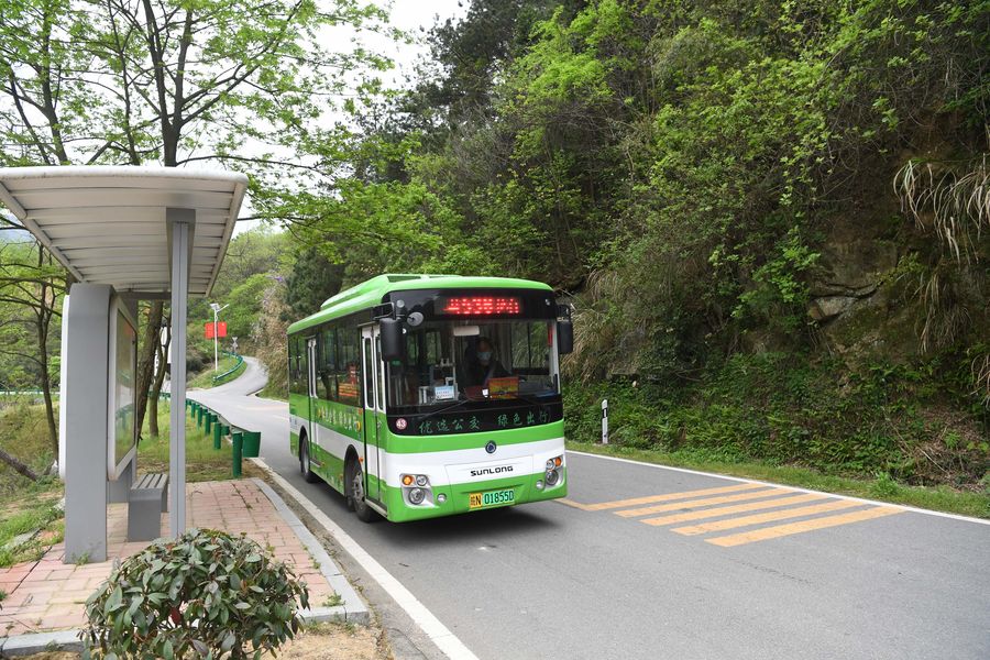 A bus runs on a rural road in Jinzhai County, east China's Anhui Province, April 17, 2020. (Xinhua/Liu Junxi)