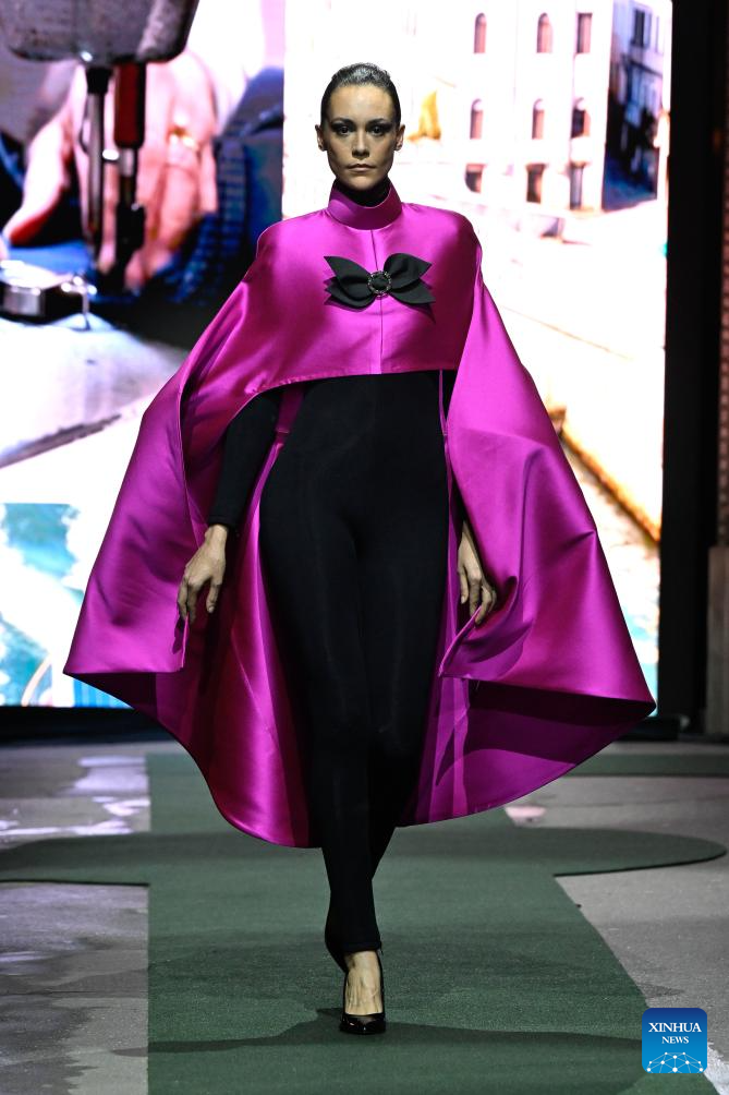 A model presents a creation from the Ready-to-Wear Fall/Winter 2026-2027 collections by Pierre Cardin during the Paris Fashion Week in Paris, France, on March 10, 2026. (MeetEurope/Handout via Xinhua)